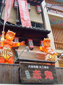 私は味よりも店の上にいた赤鬼達がミョーにキュートで惹かれました。